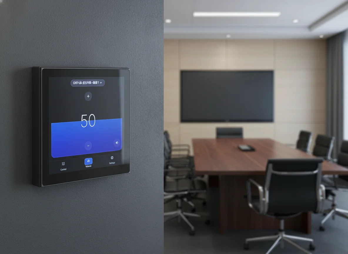 AES67 PANEL is a PoE wall touch controller for conference, education, hospitality, and commercial AV environments. It unifies source selection, zone control, volume management, and device settings on one panel, while enabling centralized web configuration and batch deployment.