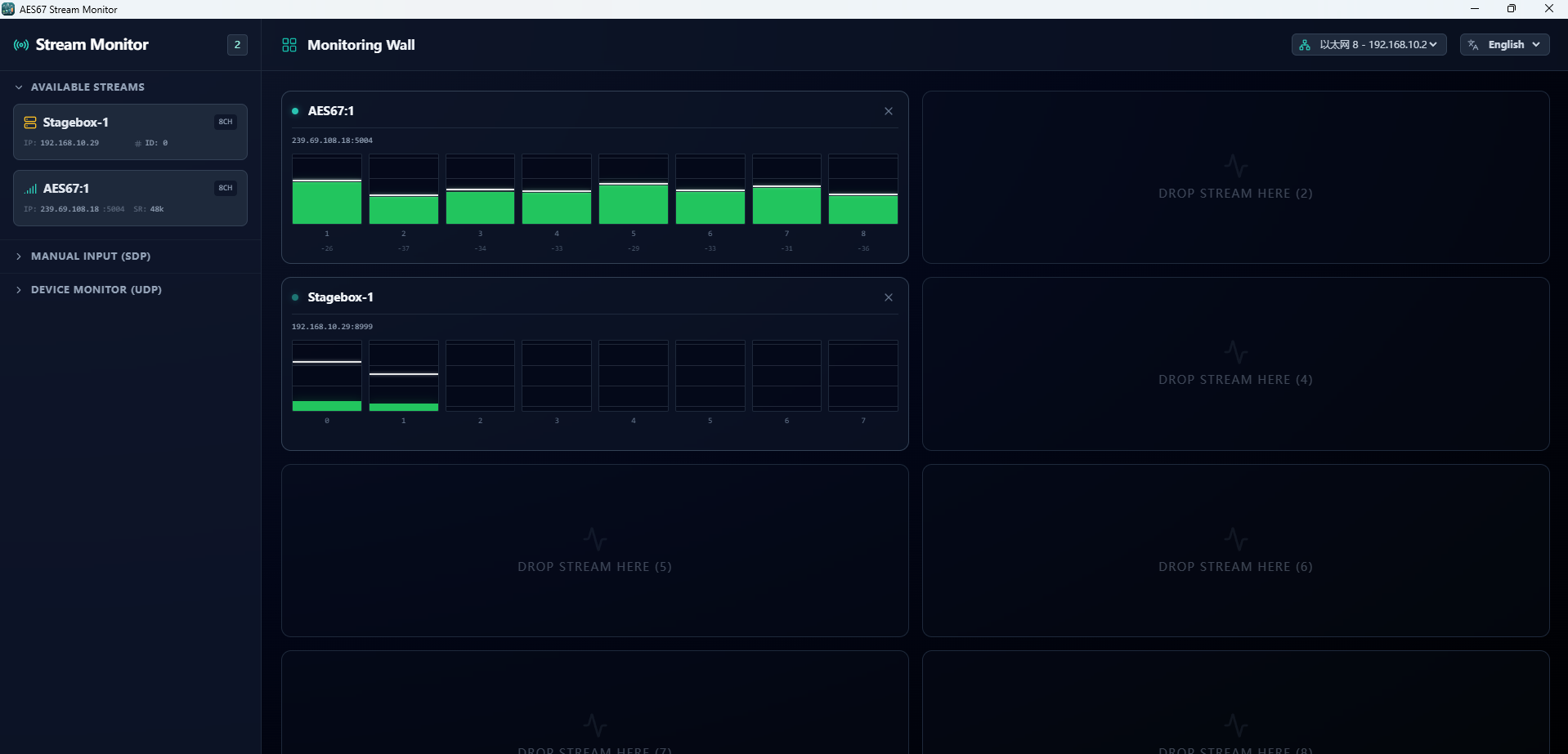 A powerful, cross-platform audio level monitoring solution built with Node and Electron. This tool allows broadcast engineers and audio technicians to discover and monitor real-time audio levels of AES67 or ST2110-30 multicast streams through a GUI.