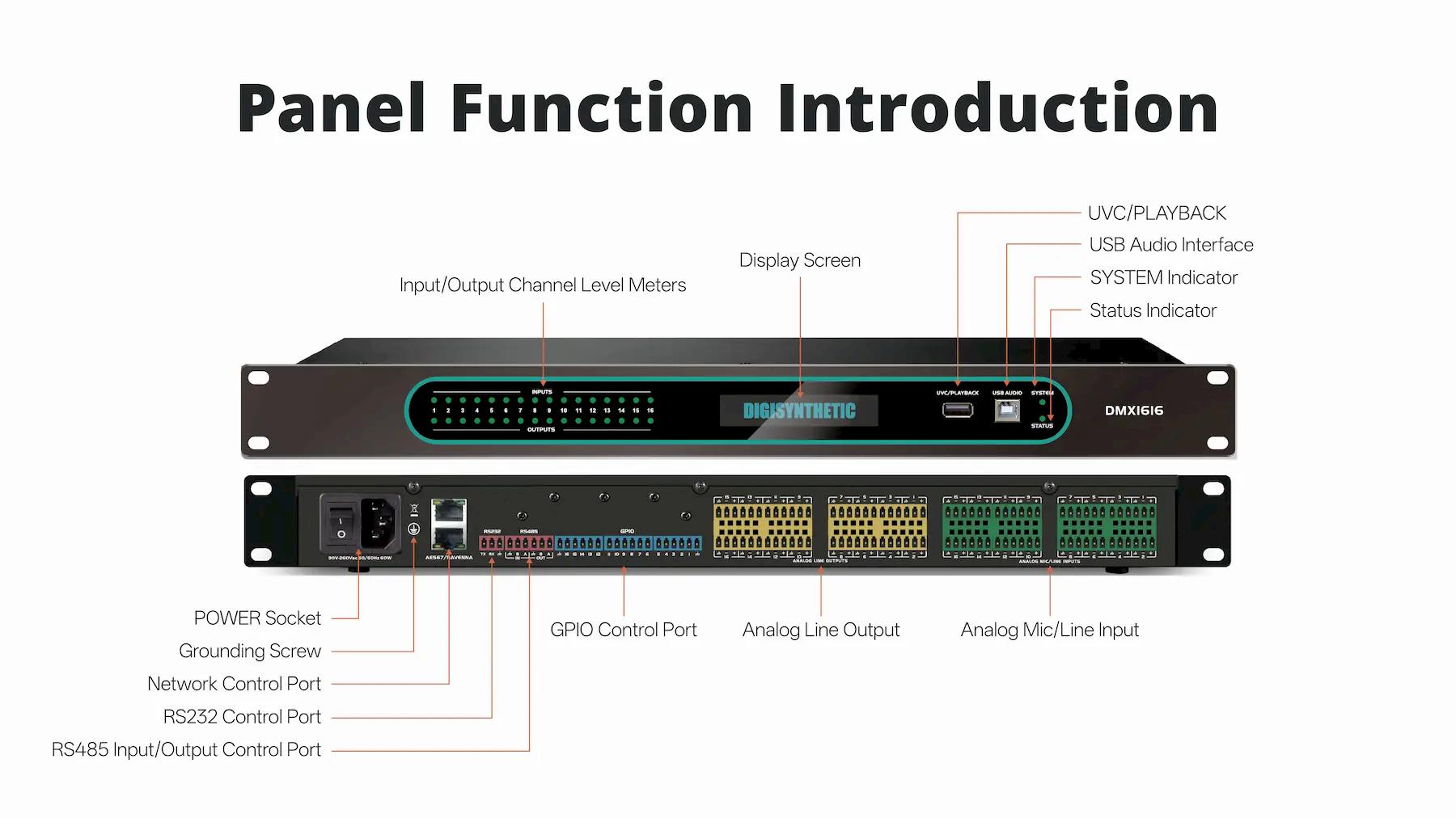 - DMX1616是一款网络DSP音频处理器,包含16×16网络音频通道(支持DIGISYN LINK/AES67协议)